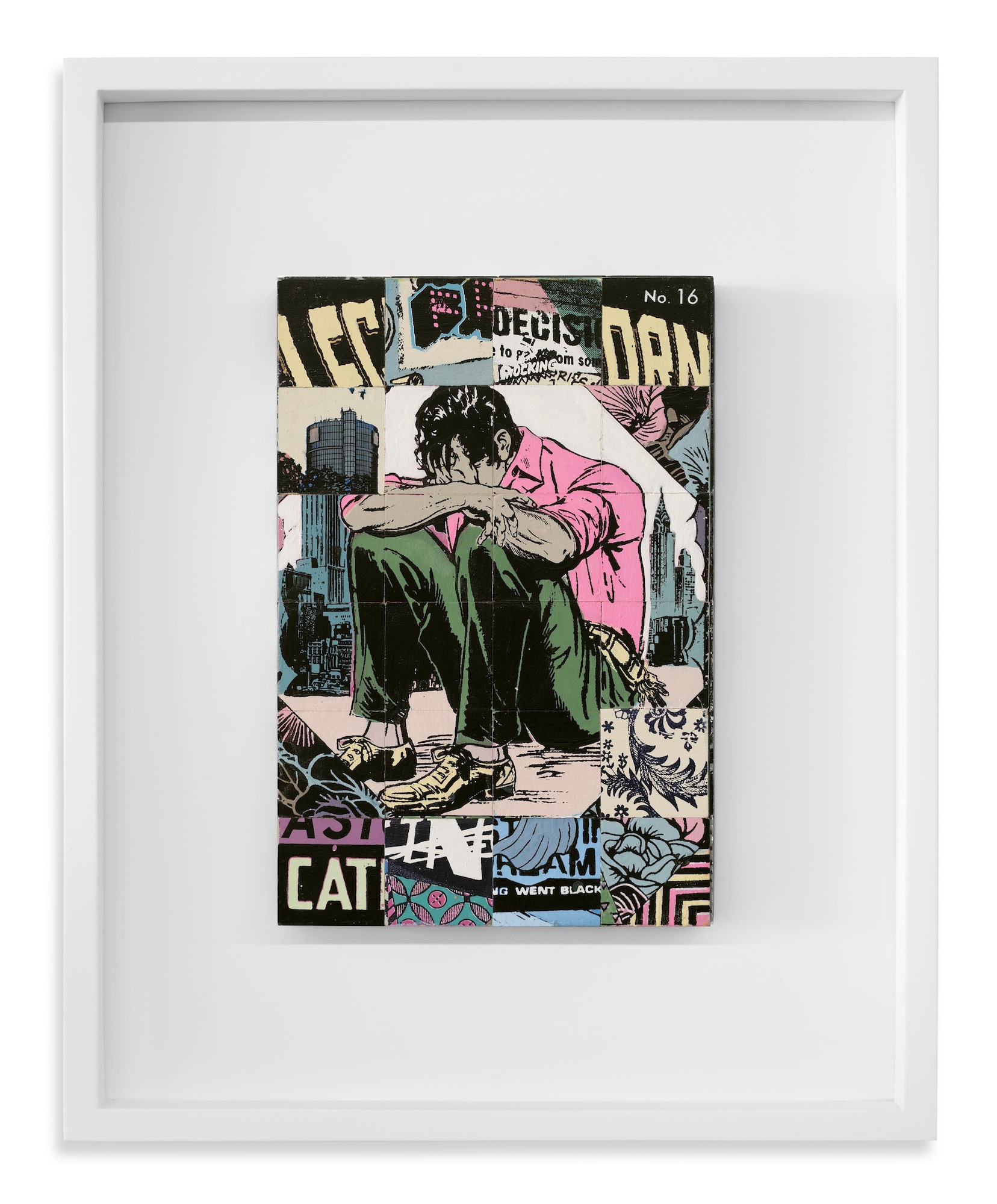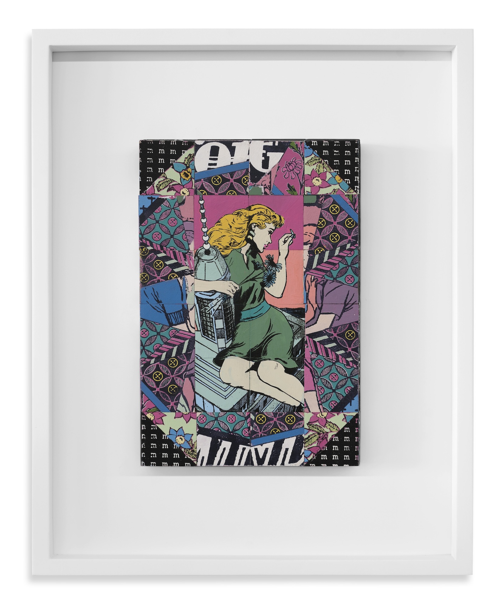 FAILE, Worth Berlin, Acrylic and Silkscreen Ink on Wood Blocks, White Wood Frame, 36,8 x 44,5 x 5,7 cm / 14,5 x 17,5 x 2,2 inches, 2017