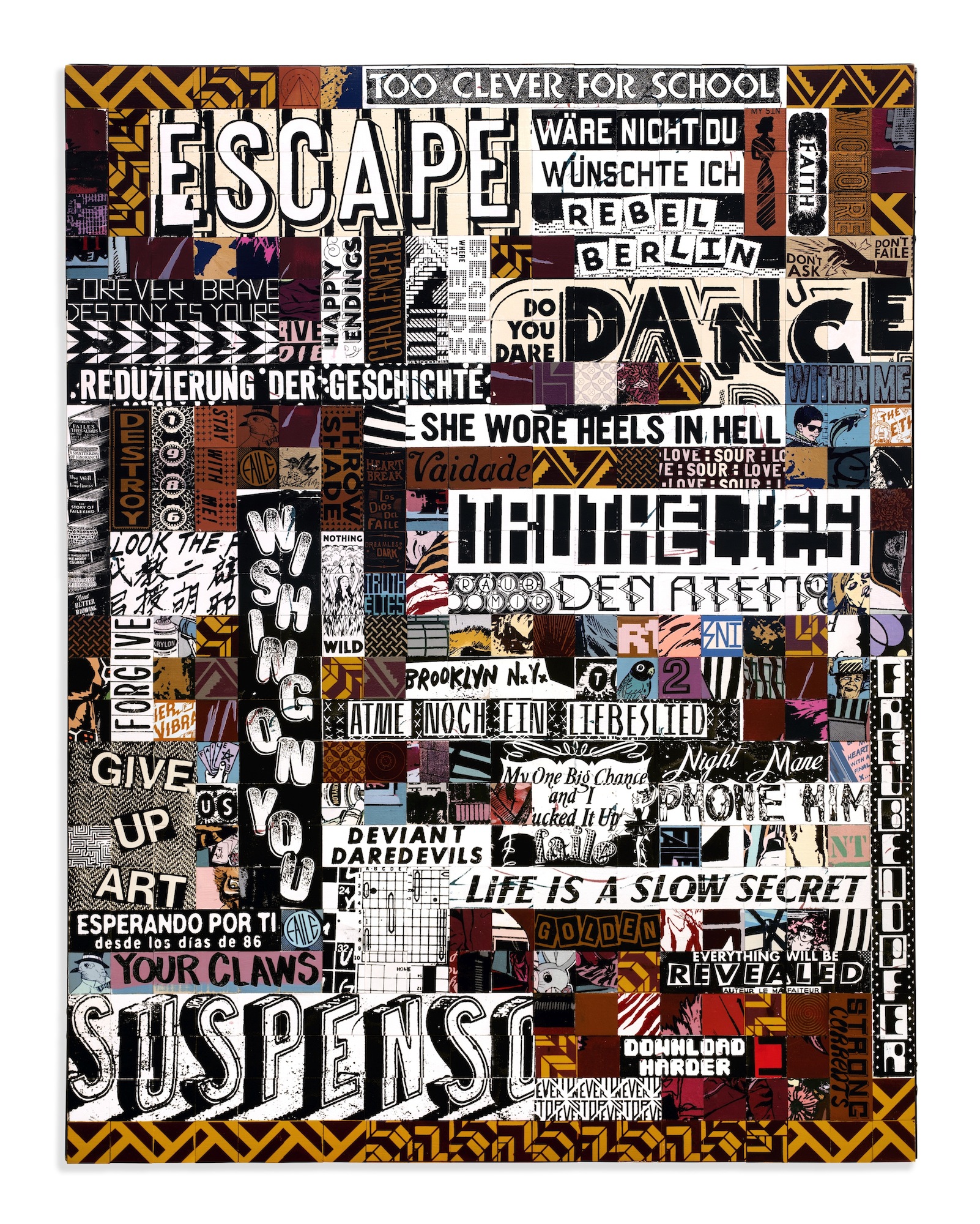 FAILE, Rebel Berlin, Acrylic and Silkscreen Ink on Wood Blocks, Steel Frame, 134,6 x 104 x 7,6 cm / 53 x 41 x 3 inches, 2017