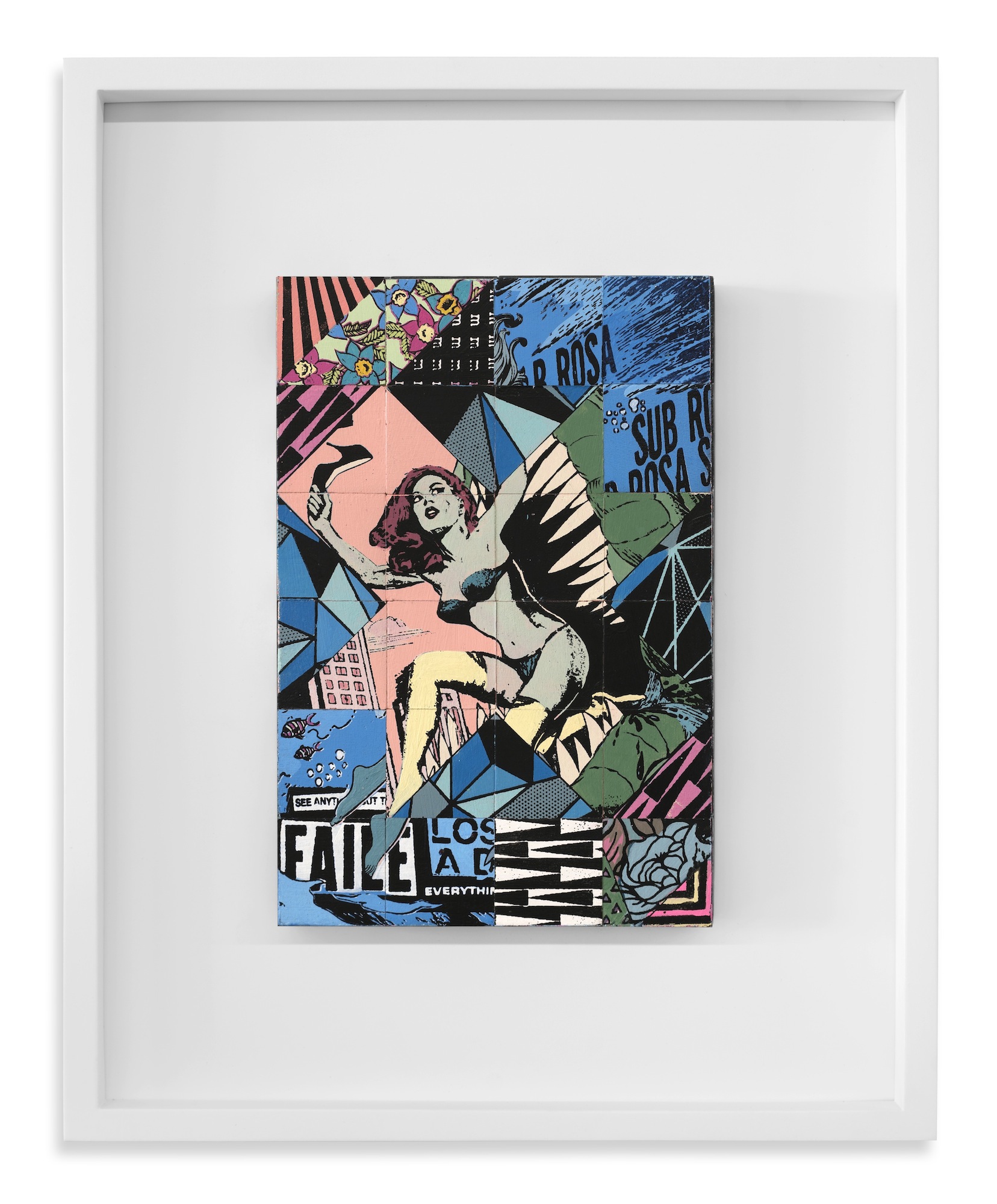 FAILE, Sub Rosa Happens Berlin, Acrylic and Silkscreen Ink on Wood Blocks, White Wood Frame, 36,8 x 44,5 x 5,7 cm / 14,5 x 17,5 x 2,2 inches, 2017