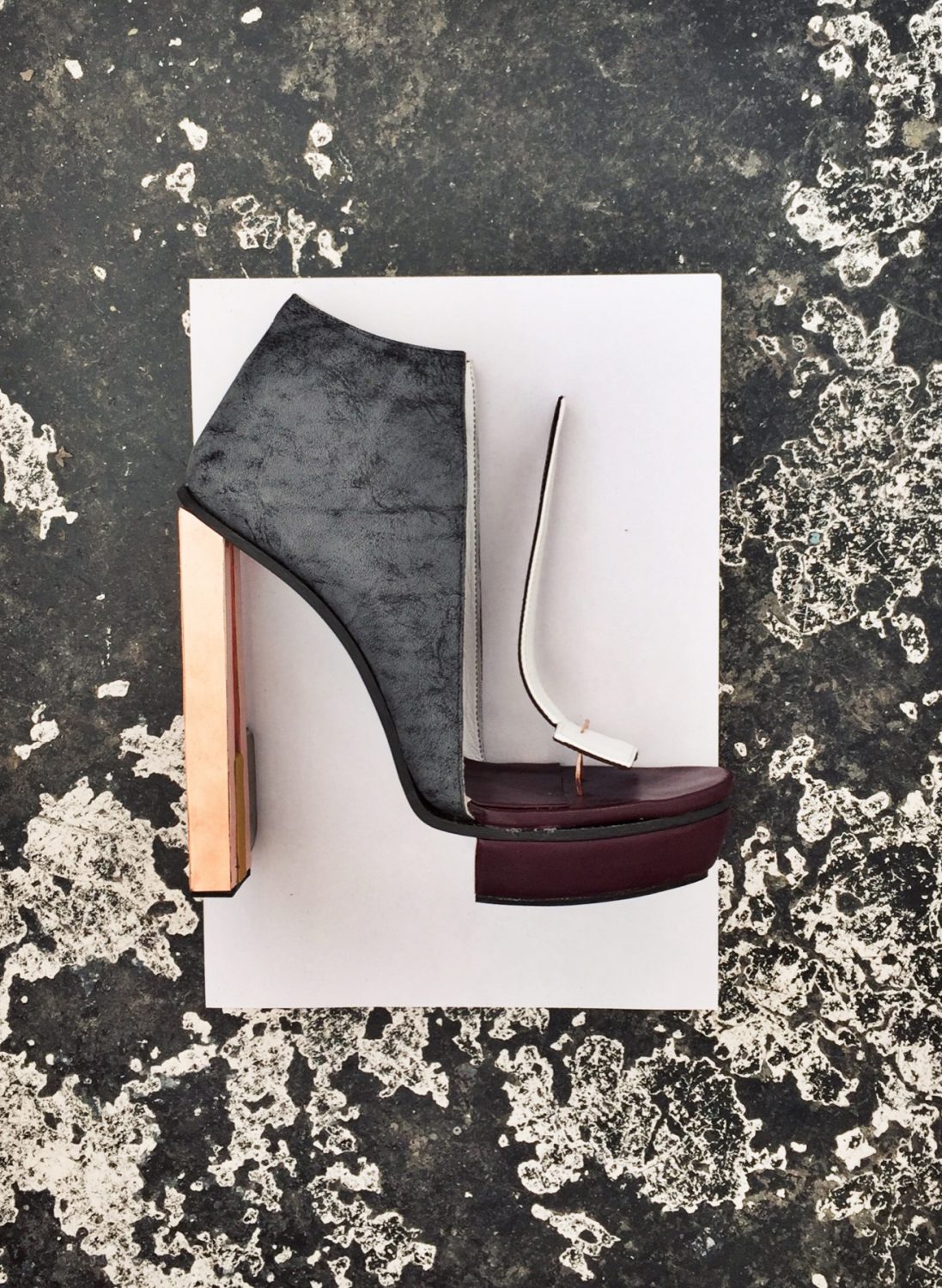 Carolin Holzhuber, Conjoined Illusion Sole B, Kalbsleder, Lammleder, Silberdraht, Kork, Carbon, 2014, © Thuy Pham